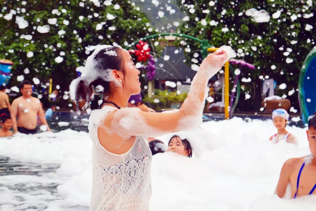 欢乐水世界 温泉区域设有欢乐水世界,引进了“冲关回旋”、“六彩滑道”、“动感水屋”、“蘑菇喷淋”、“T型喷水”等多种大型水上游乐项目,总面积超过4000平方米的动感水屋、蘑菇喷淋、T型喷水等专门为儿童设计的游乐设施,这里是对勇敢者的心理挑战,是水的世界,是挥洒激情的乐园,让我们忘记烦恼,忘记年龄,尽情体验水的魅力带给我们的刺激感受和欢乐氛围。 冲天回旋 看上去就无比刺激的冲天回旋 将为你带来 无可比拟的玩水快感 冲天回旋滑道有水上过山车之称 非常适合喜欢挑战和刺激的年轻人 六彩滑道 总长度180多米的六彩滑道 通过助推水流实现分级高速俯冲 让你充分感受到激情水中冲刺 感受超越普通滑道的刺激 梦幻泡泡浴 慵懒地泡在水里 全身被超多梦幻般的泡泡包围着 仿佛置身在一个美妙的童话世界里