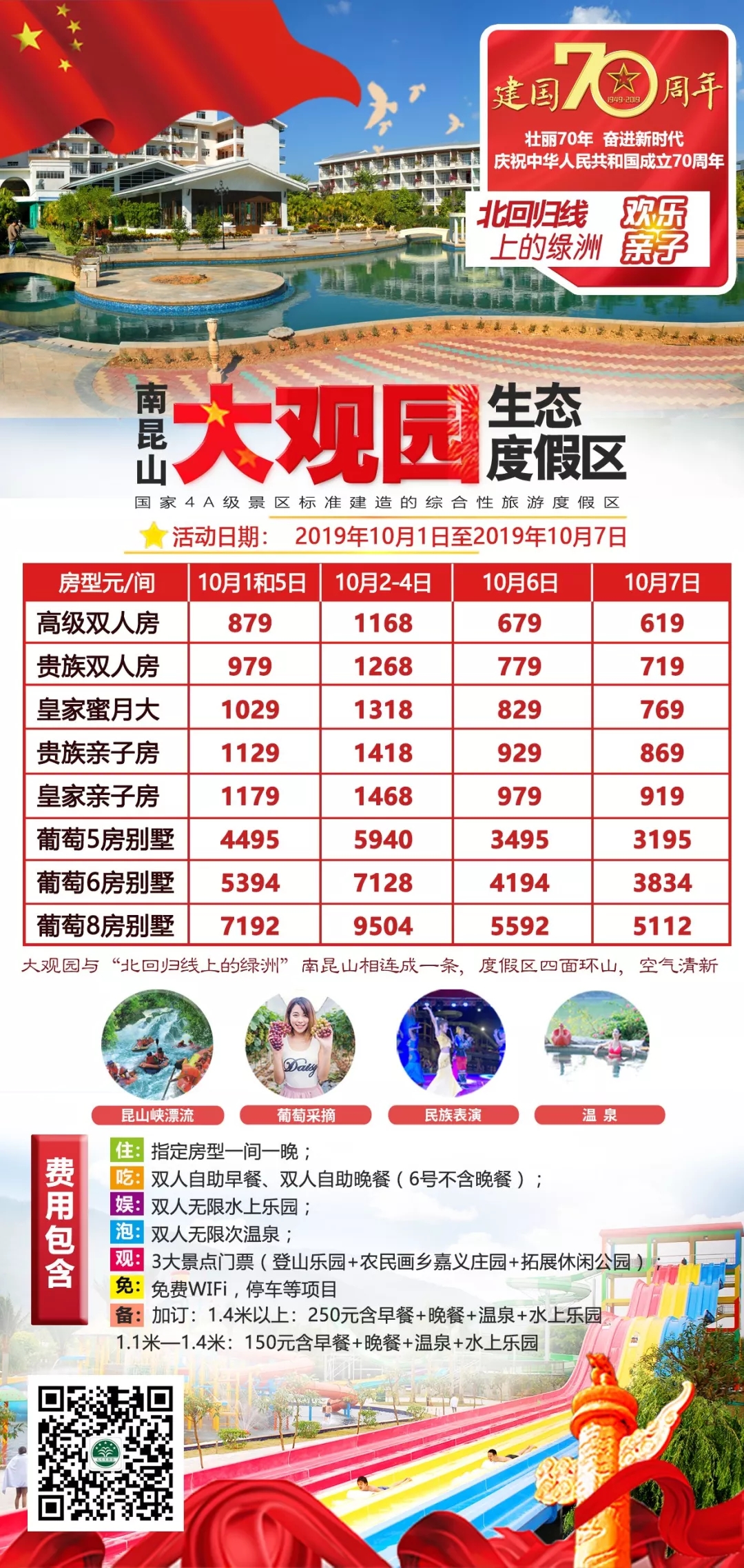 套餐包含:高级双人房+两人温泉欢乐水世界+两人自助早餐+民族表演