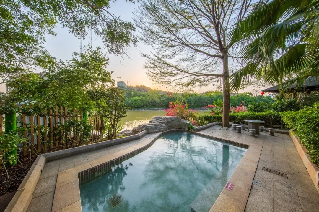 住房凭房卡享受无限次泡温泉、太极养生泉、欢乐水世界,其中太极养生泉含五大风情温泉区,共有79个功能各异的特色温泉池,设有日本风情、巴厘岛风情、南美风情、河岸线风光、岭南风情区五个浸泡区,拥有几十种功能各异、各具特色的温泉池。